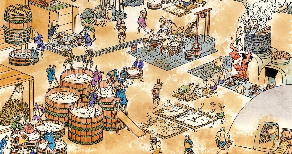 生酛釀造法確立於1700年左右,是日本清酒最傳統也最正統的釀造法。用小桶培育用於大桶發酵需要的酵母,這一過程稱為“製酛”或“培育酒母”。生酛釀造需要利用大自然的微生物的生存競爭,通過高超且複雜的調製技術,花費簡易釀造法3倍的時間培育出精壯優質的酵母。下面將通過實際的作業影像介紹生酛釀造的三大工序:下料、搗酛(山卸)、暖氣加溫。
